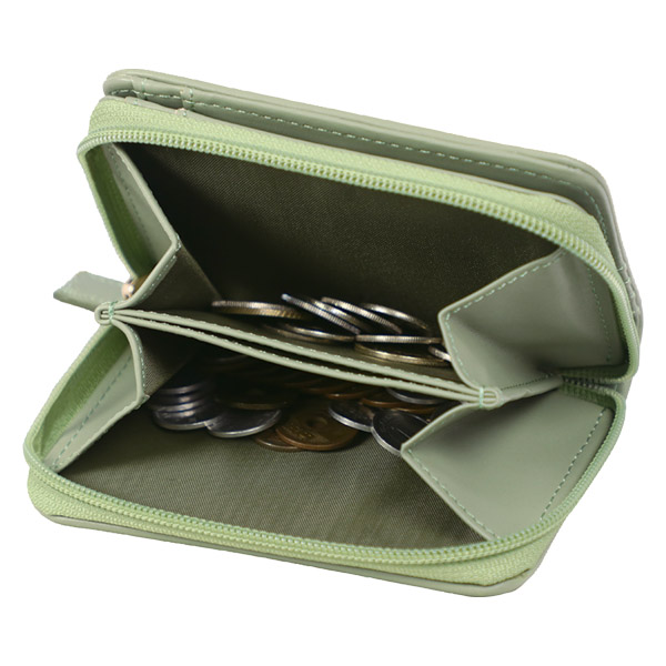 メッシュ型押し コインが分けられる二つ折り財布 グリーン