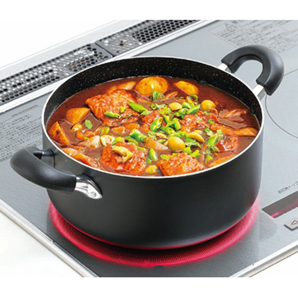 【お得】 マーブラック IH対応マーブル深型両手鍋24cm