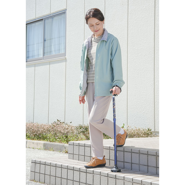 4点式だから自立します。360°動くつえ先で扱いもスムーズ。